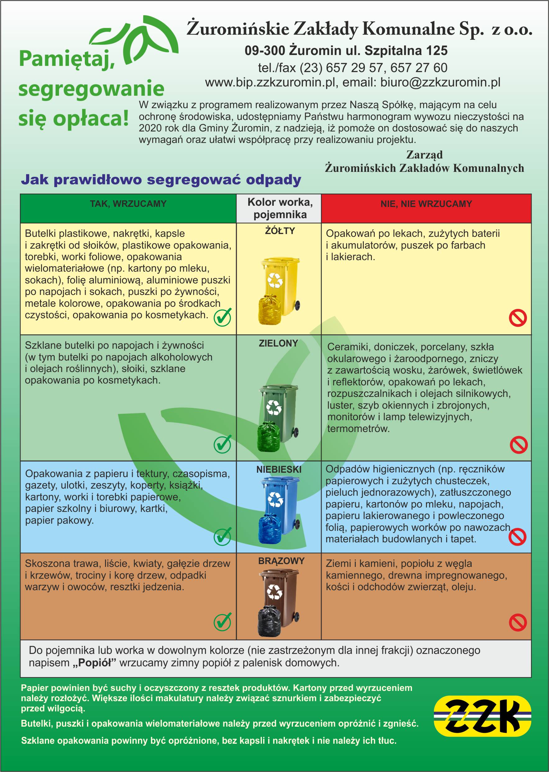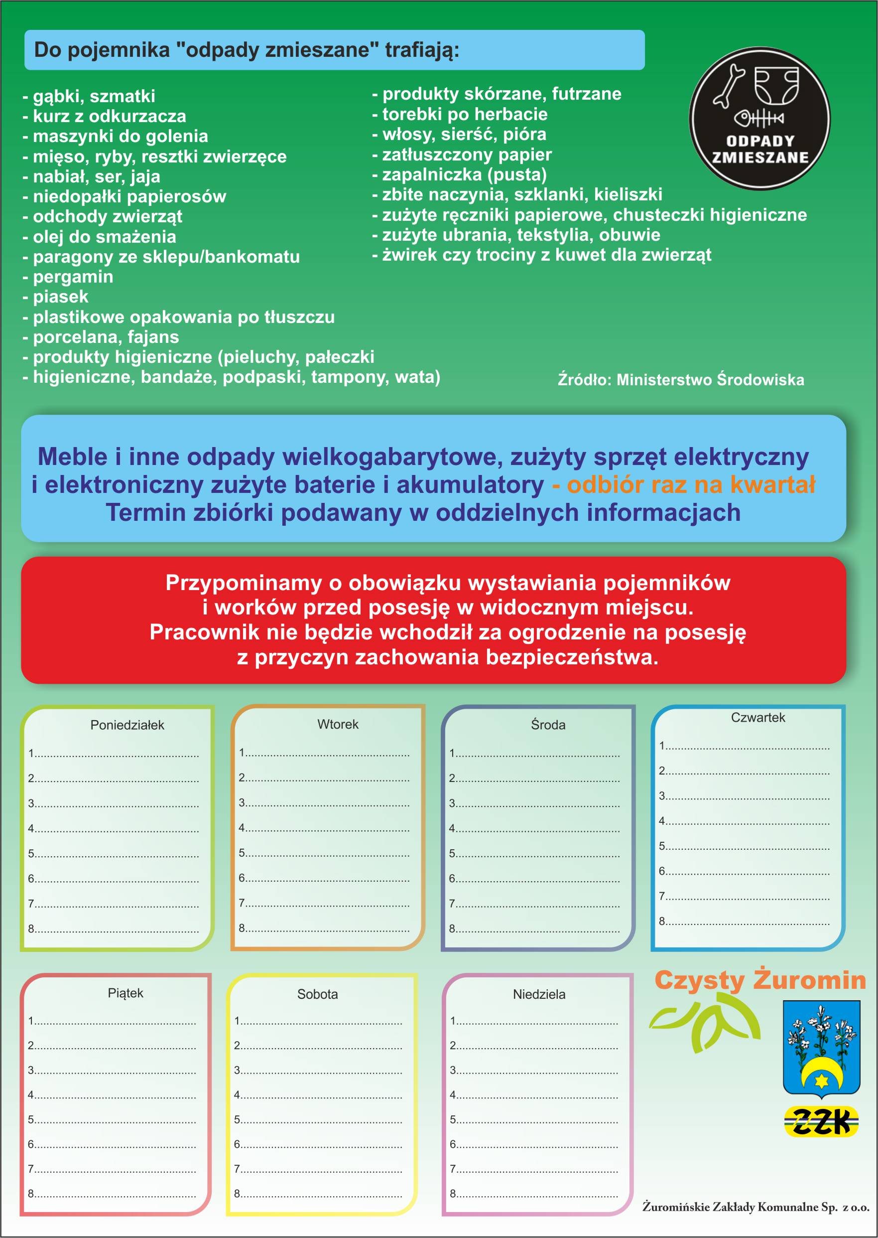 Harmonogram wywozu nieczystości dla Gminy Żuromin