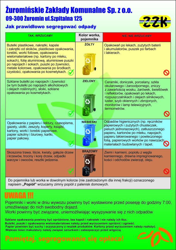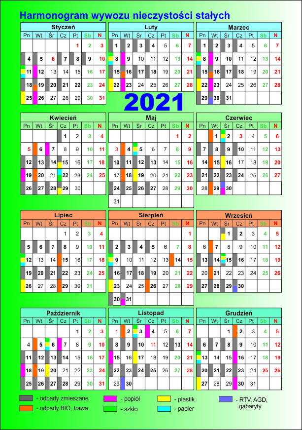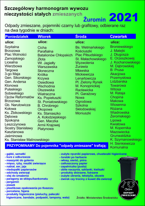 Harmonogram wywozu nieczystości 2021 miasto Żuromin