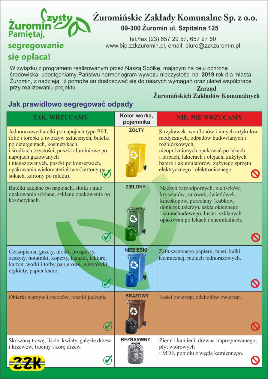 Harmonogram wywozu nieczystości 2019